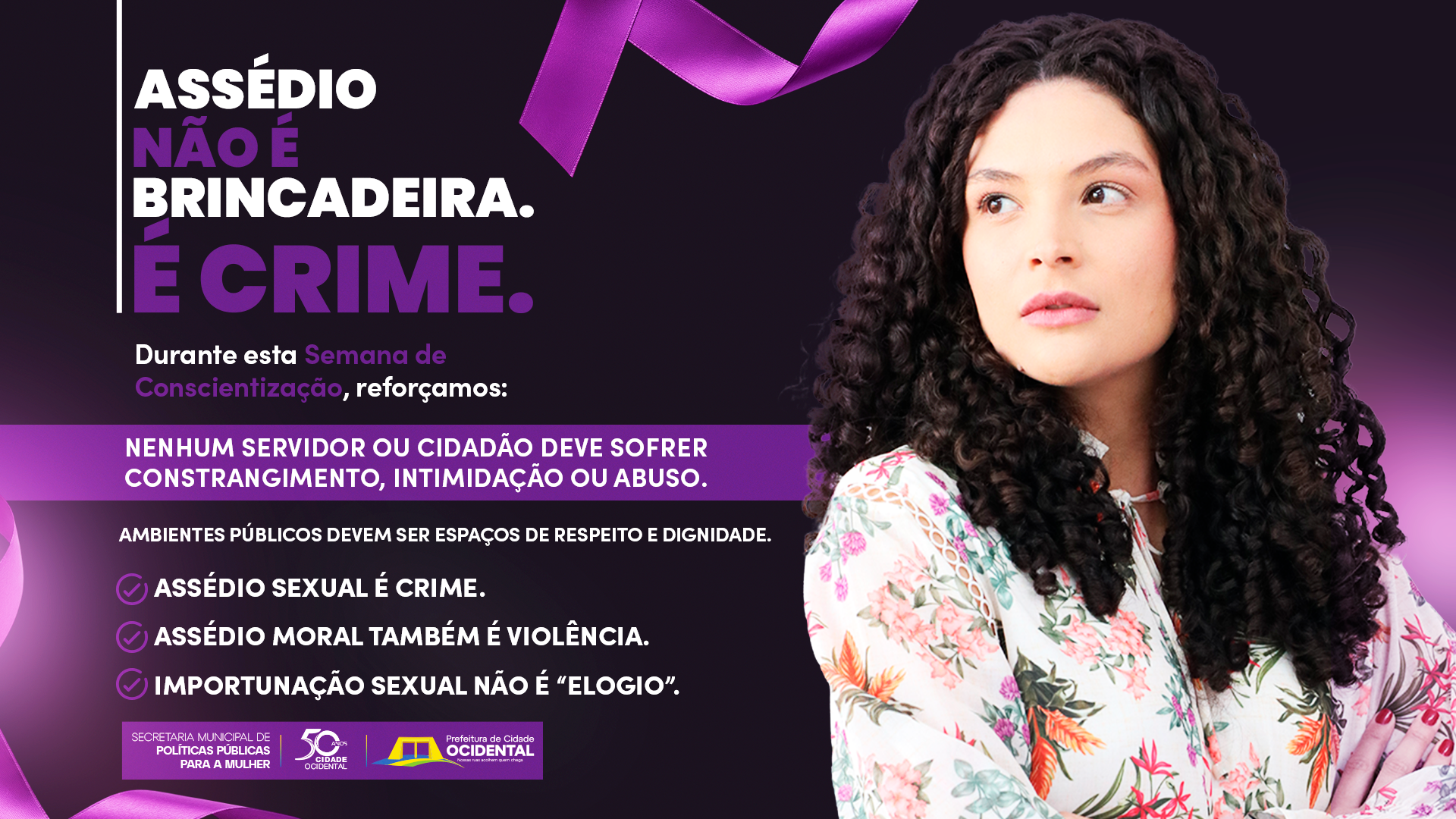 #Cidade Ocidental #Política Prefeitura de Cidade Ocidental realiza Semana de Conscientização sobre Assédio nas Repartições Públicas A Prefeitura de Cidade Ocidental promove a Semana de Conscientização sobre Assédio Sexual, Assédio Moral e Importunação Sexual, reforçando o novoolhardigital / 2 semanas Comment (0) (25)