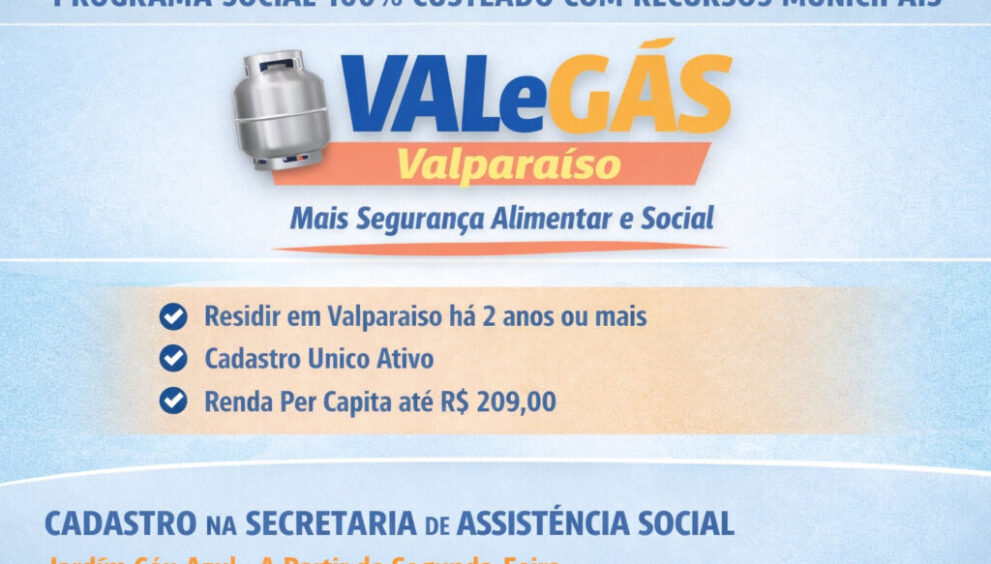 A Prefeitura de Valparaíso de Goiás publicou, nesta quinta-feira, o decreto que regulamenta o VALeGÁS, programa social criado para fortalecer a segurança alimentar e social das famílias em situação de vulnerabilidade no município. A iniciativa é uma política pública de Valparaíso, custeada integralmente com recursos municipais.