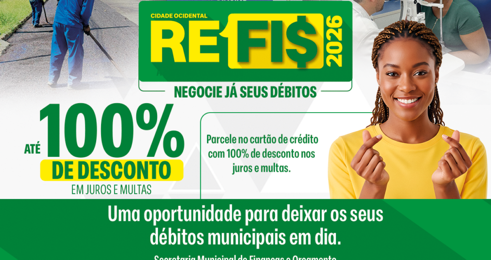A redução de juros, multas e atualização monetária, inclusive de caráter moratório, pode chegar a 100% para pagamento à vista A Prefeitura Municipal de Cidade Ocidental inicia na próxima segunda-feira, dia 16 de março, o Programa de Incentivo à Regularização Fiscal do Município de Cidade Ocidental – REFIS 2026. Trata-se de uma iniciativa para pessoas […]